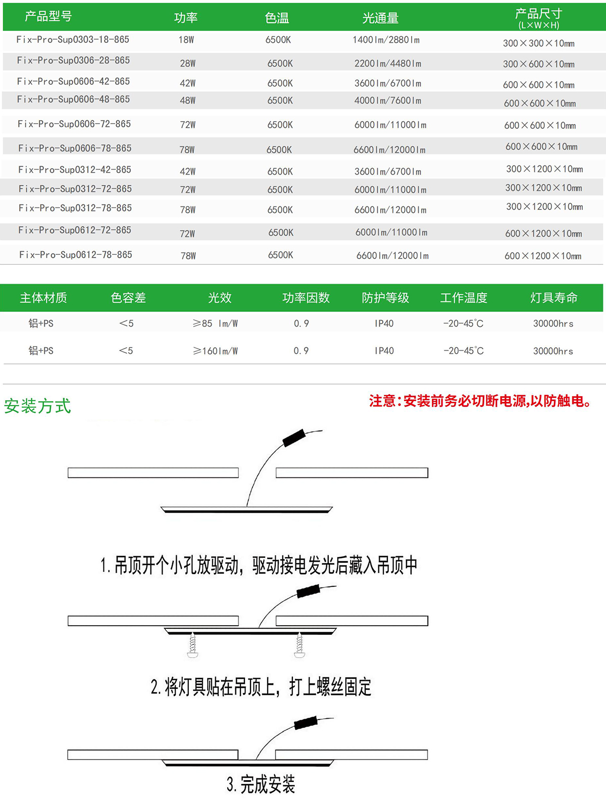 螺钉固定,安装简单,完美贴平天花,方便快捷。